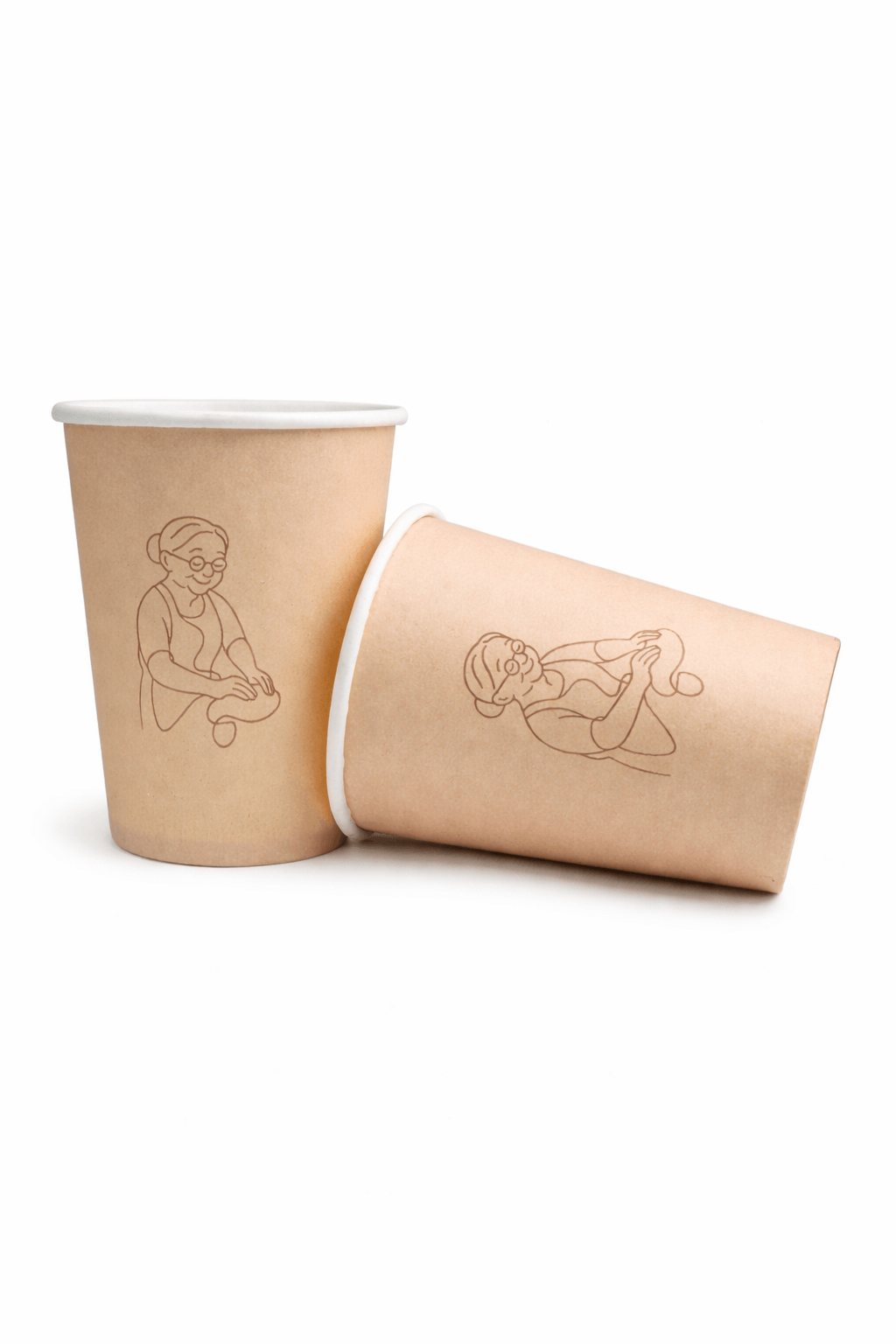 כוס נייר איכותית בעיצוב אישי, המשלבת פונקציונליות עם נראות ייחודית ומיתוג מדויק.