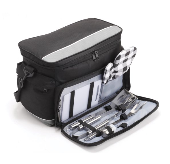 כוללת תא אחסון מרווח לשמירה על קור לצד סט אביזרים שימושיים להכנת ברביקיו: קרש חיתוך, כפפת גריל, מלח פלפל ופותחן יין. רצועת נשיאה מתכווננת מאפשרת ניידות נוחה לכל מקום.