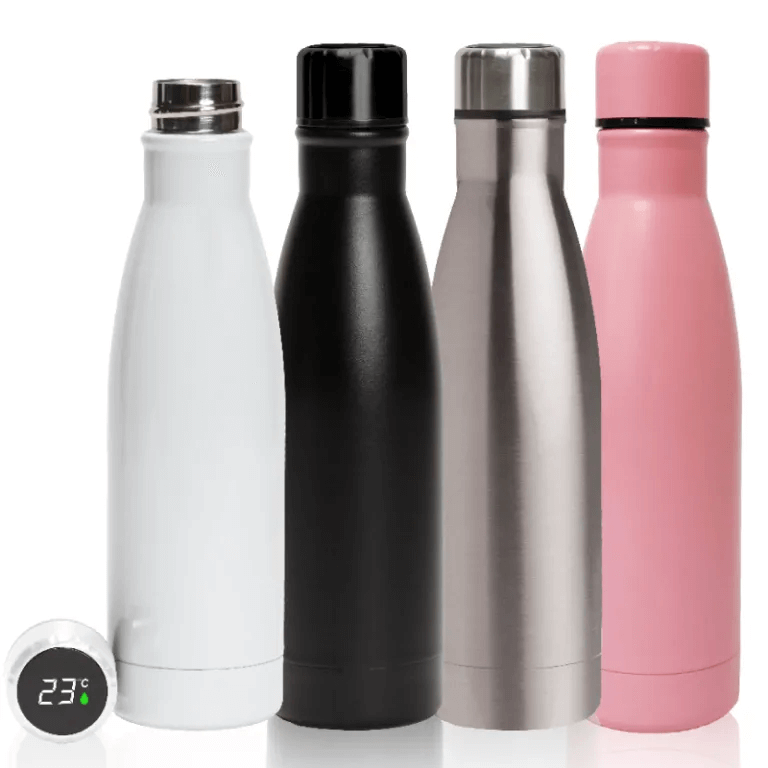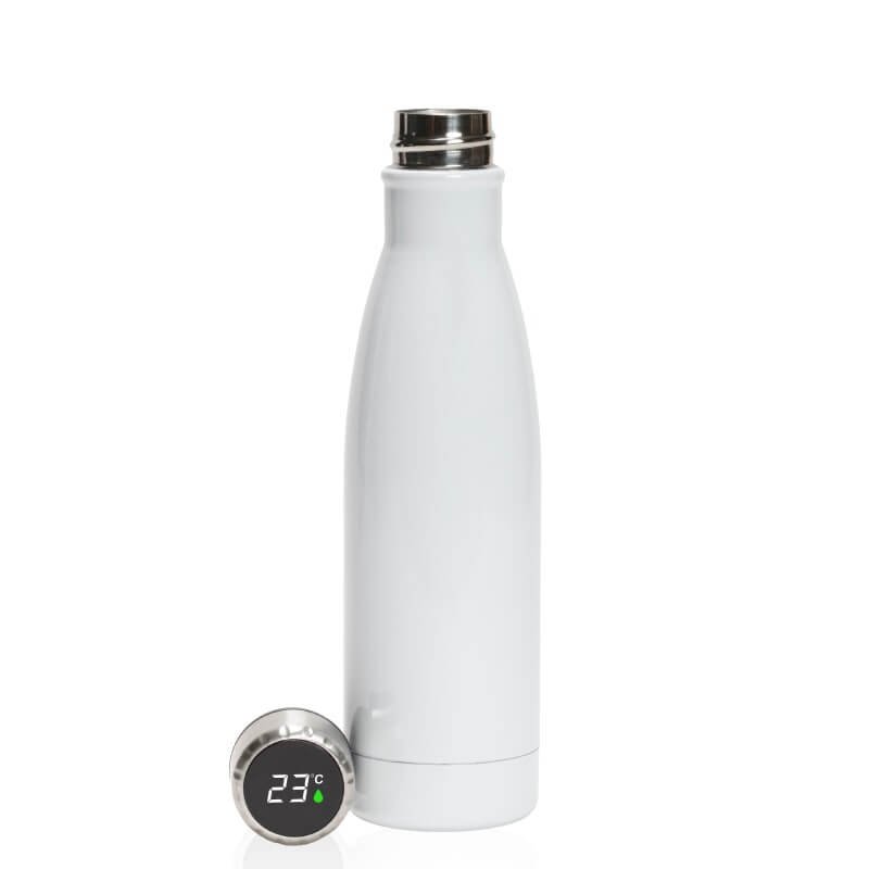 הבקבוק כולל מסך מגע אינטואיטיבי המציג את טמפרטורת המשקה בזמן אמת, ללא צורך בסוללות או טעינה.