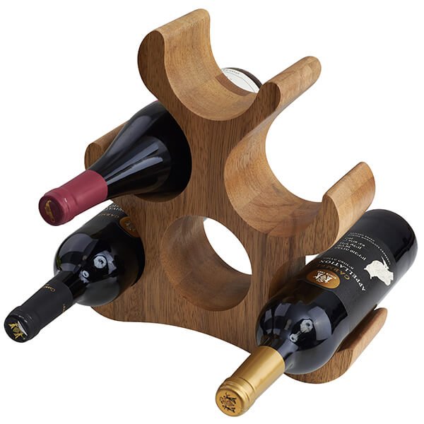 מעמד עץ קומפקטי ל־6 בקבוקי יין, בעיצוב אלגנטי
