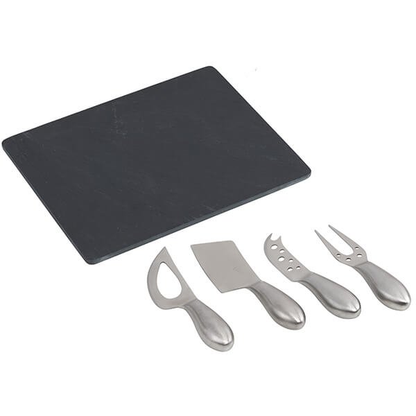 הסט כולל לוח עץ שיטה (אקציה) רחב ועמיד, משולב לוח אבן טבעית להגשה אלגנטית, יחד עם ארבע סכיני גבינות ייעודיות המתאימות לסוגי גבינות שונים.