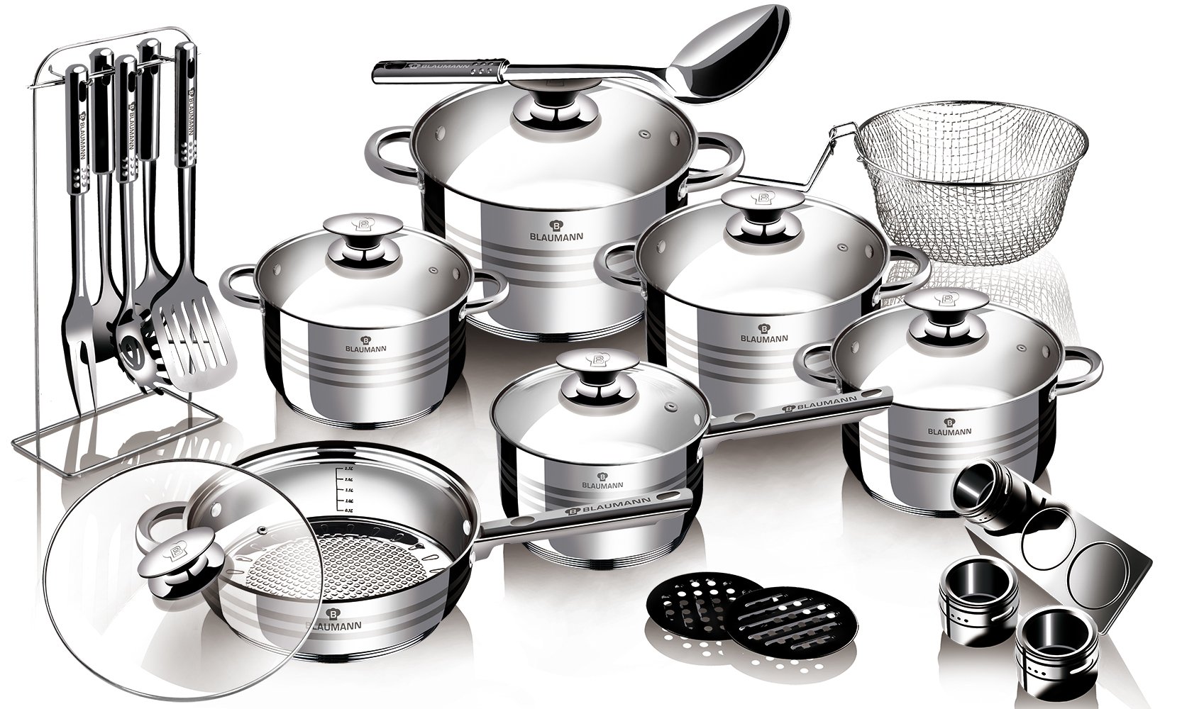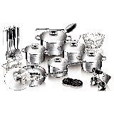 סט כלי בישול 27 חלקים מנירוסטה עם מכסי זכוכית