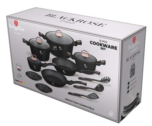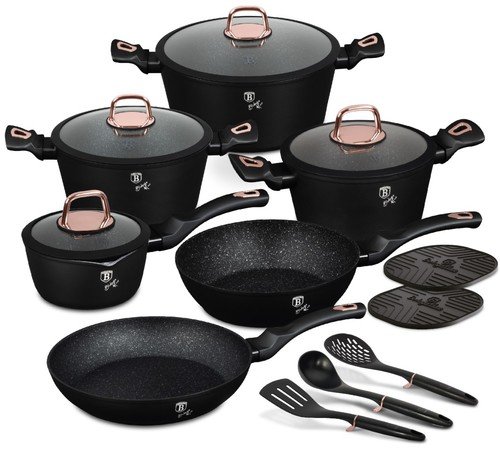 סט סירים ומחבתות יציקת אלומיניום 15 חלקים עם כלי מטבח