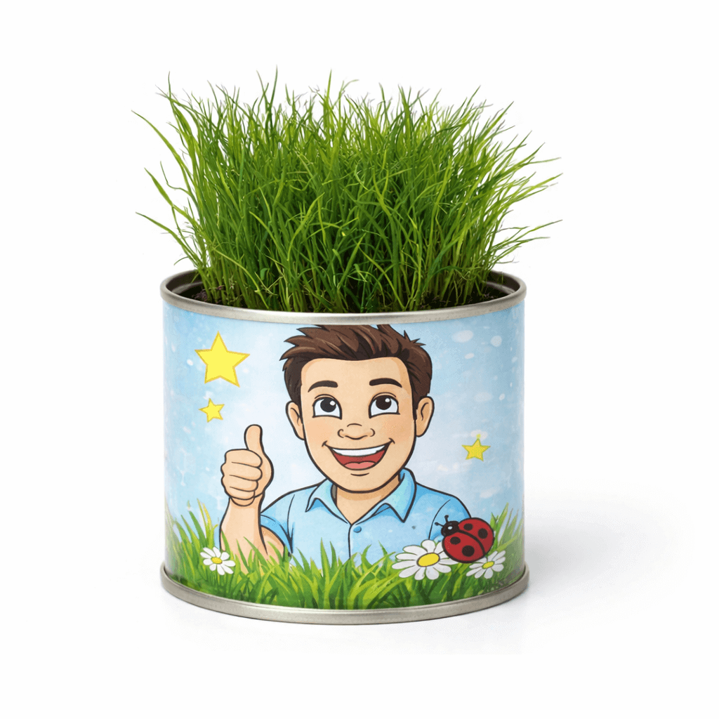 • במרכז הפחית מחכה מצע גידול ושקית קטנה שמכילה גרעינים של עשבי תיבול וירקות ביתיים, מתוך מגוון אפשרויות לבחירה, כמו: