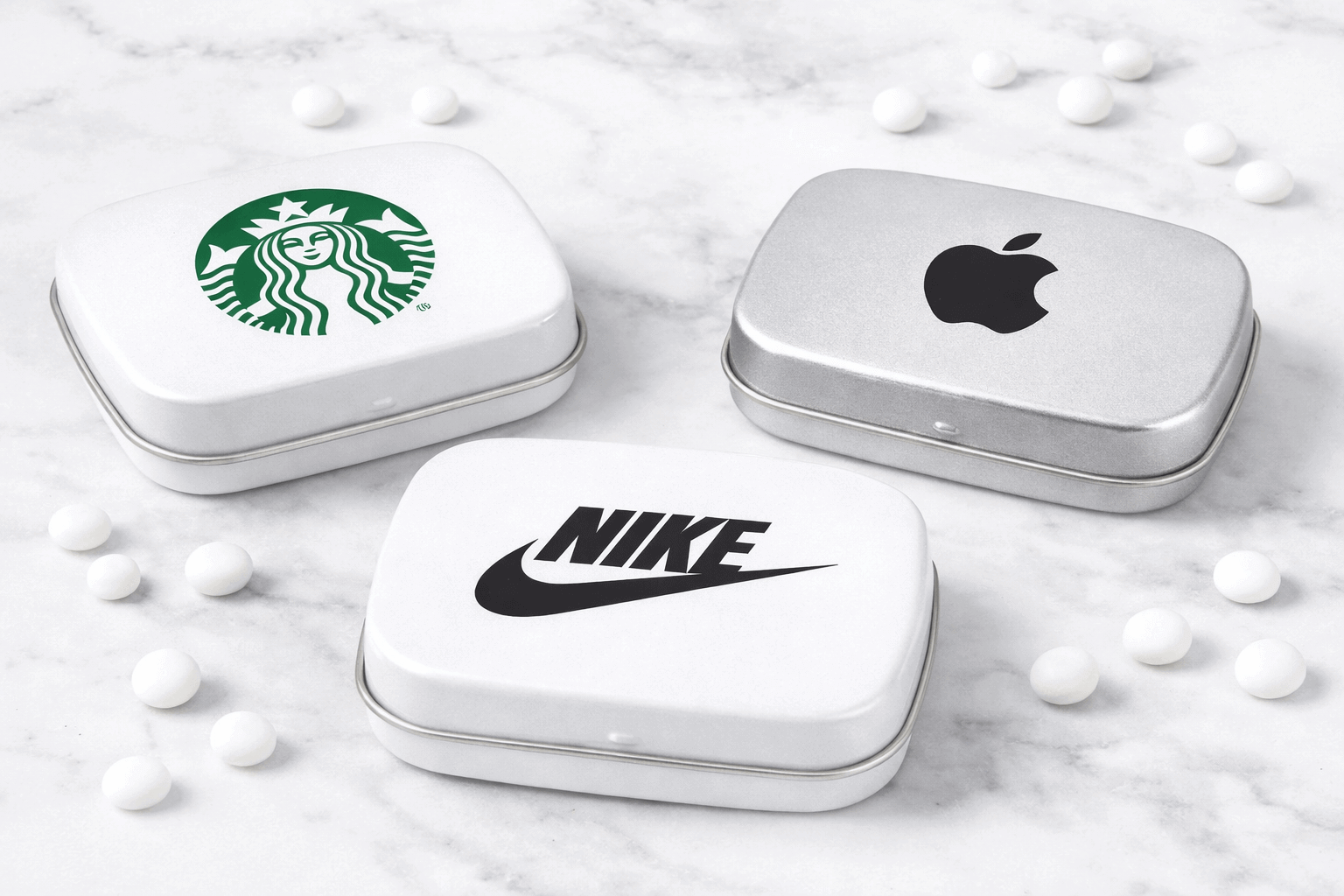 פחית מתכת קלאסית ואלגנטית, במילוי סוכריות מרעננות, המהווה פתרון מושלם למתנה ממותגת קטנה עם נוכחות גדולה.