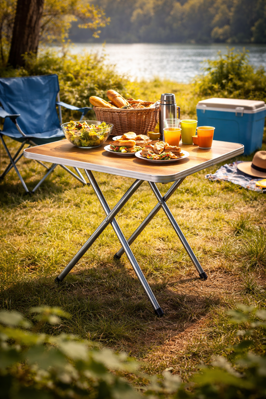 שולחן מתקפל לפיקניק דמוי עץ