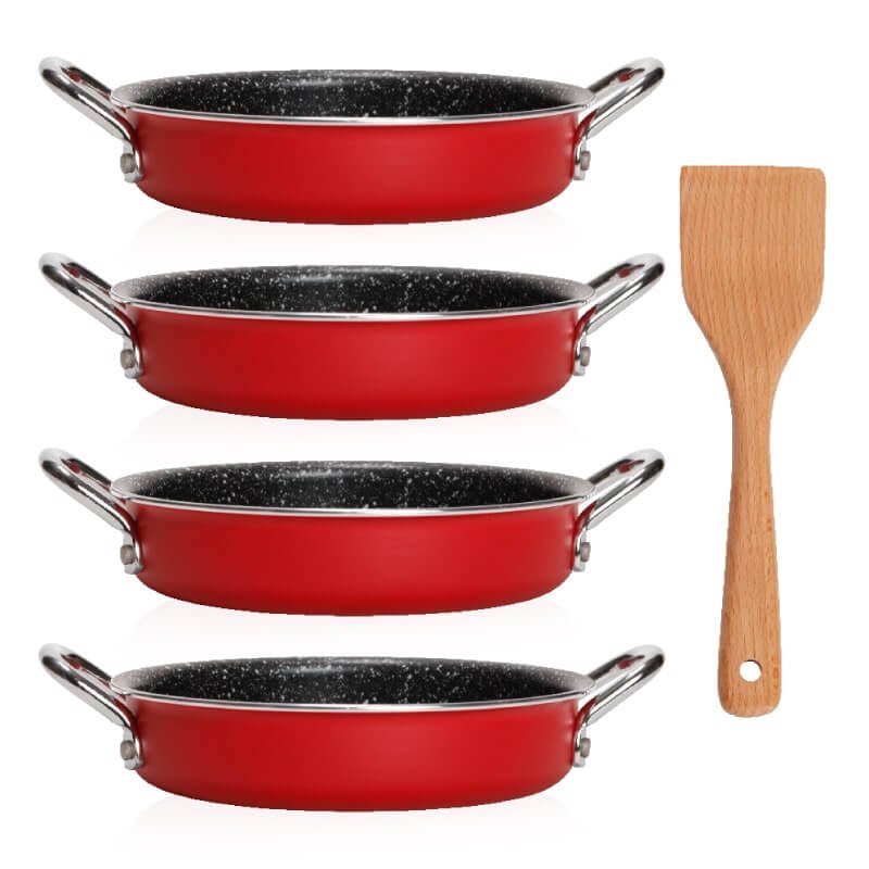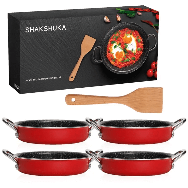 שקשוקה – סט 4 מחבתות אישיות עם מרית עץ