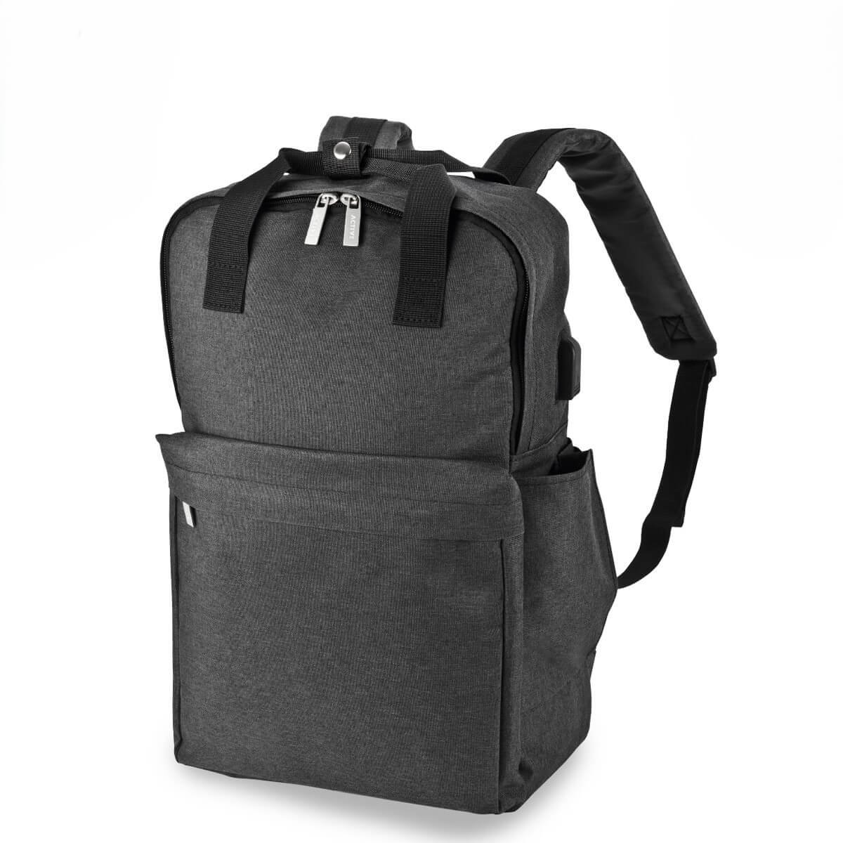 תיק גב מבד REPT ממוחזר עם תא מרופד למחשב, חיבור USB, כיסים חיצוניים ורצועות מרופדות לנשיאה נוחה.