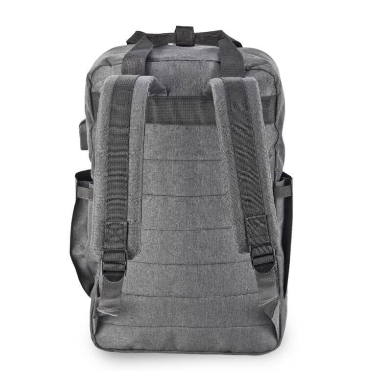 חיבור USB מובנה עם כבל מאפשר טעינה נוחה גם בזמן תנועה, והגב והרצועות המרופדות מעניקים נוחות נשיאה לאורך כל היום.